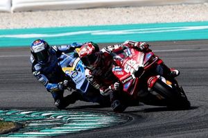 Reflecting on an entertaining tussle with di Giannantonio that saw the two riders swap position - and almost paint - on multiple occasions, Marquez admits he’d only find his rhythm once the Italian crashed out on lap nine.
